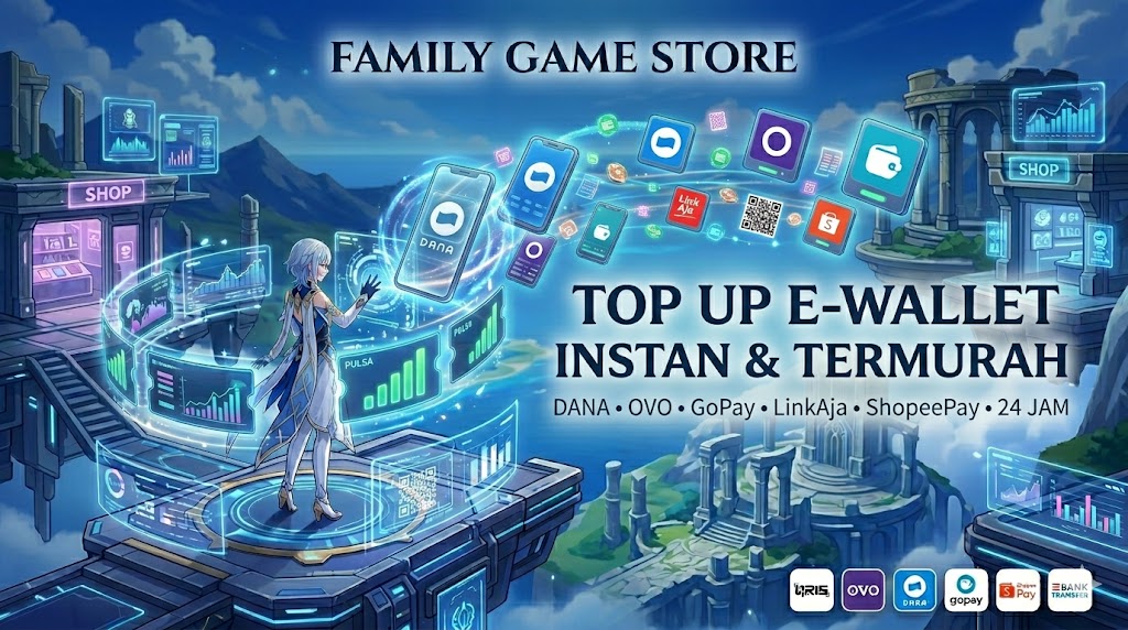 E-wallet seperti DANA, OVO, GoPay, dan LinkAja sudah menjadi kebutuhan sehari-hari untuk bayar makan, transportasi, belanja online, hingga top up game. Family Game Store menyediakan layanan isi saldo e-wallet dengan harga terbaik.